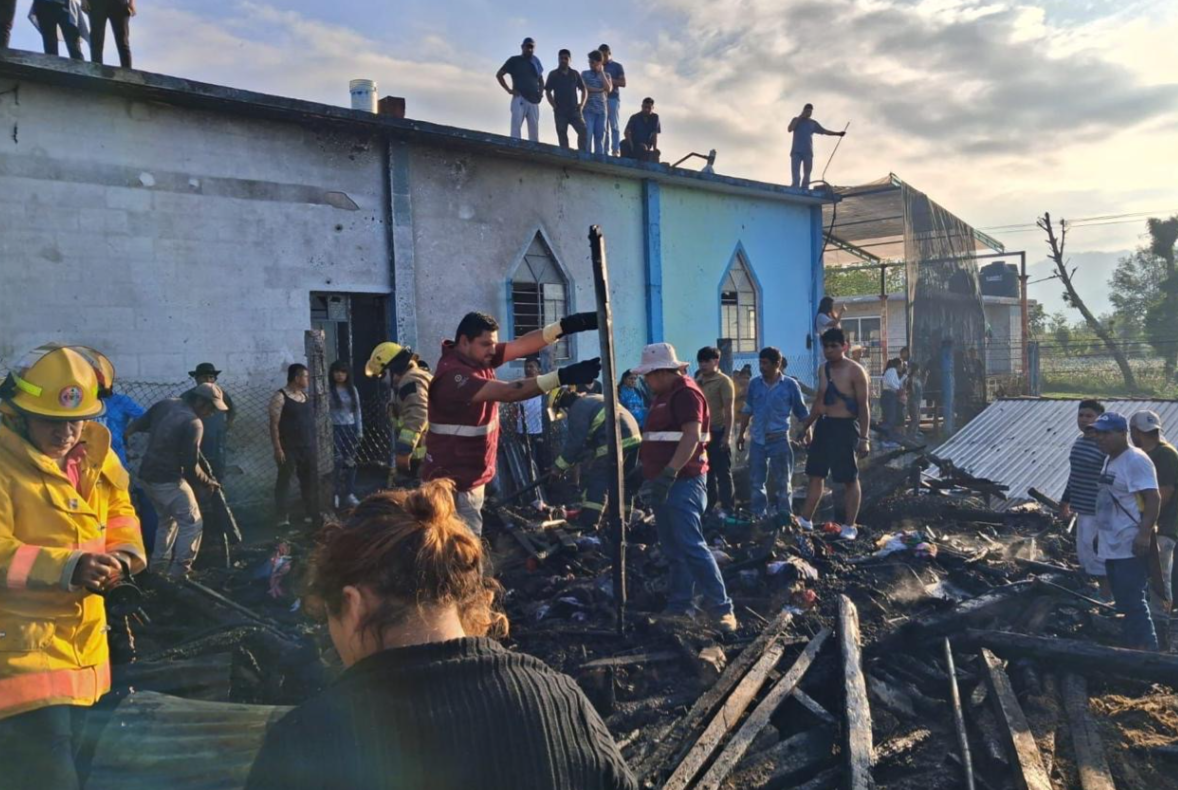 Los vecinos fueron los primeros en reaccionar. Alertados por el estruendo y las columnas de humo, marcaron los números de emergencia mientras intentaban mantenerse a distancia de las llamas, que avanzaban sin control sobre el inmueble. Minutos después, llegaron los bomberos y elementos de Protección Civil estatal, reforzados por unidades de municipios aledaños y por los propios habitantes de la comunidad, quienes se negaron a quedarse como espectadores.